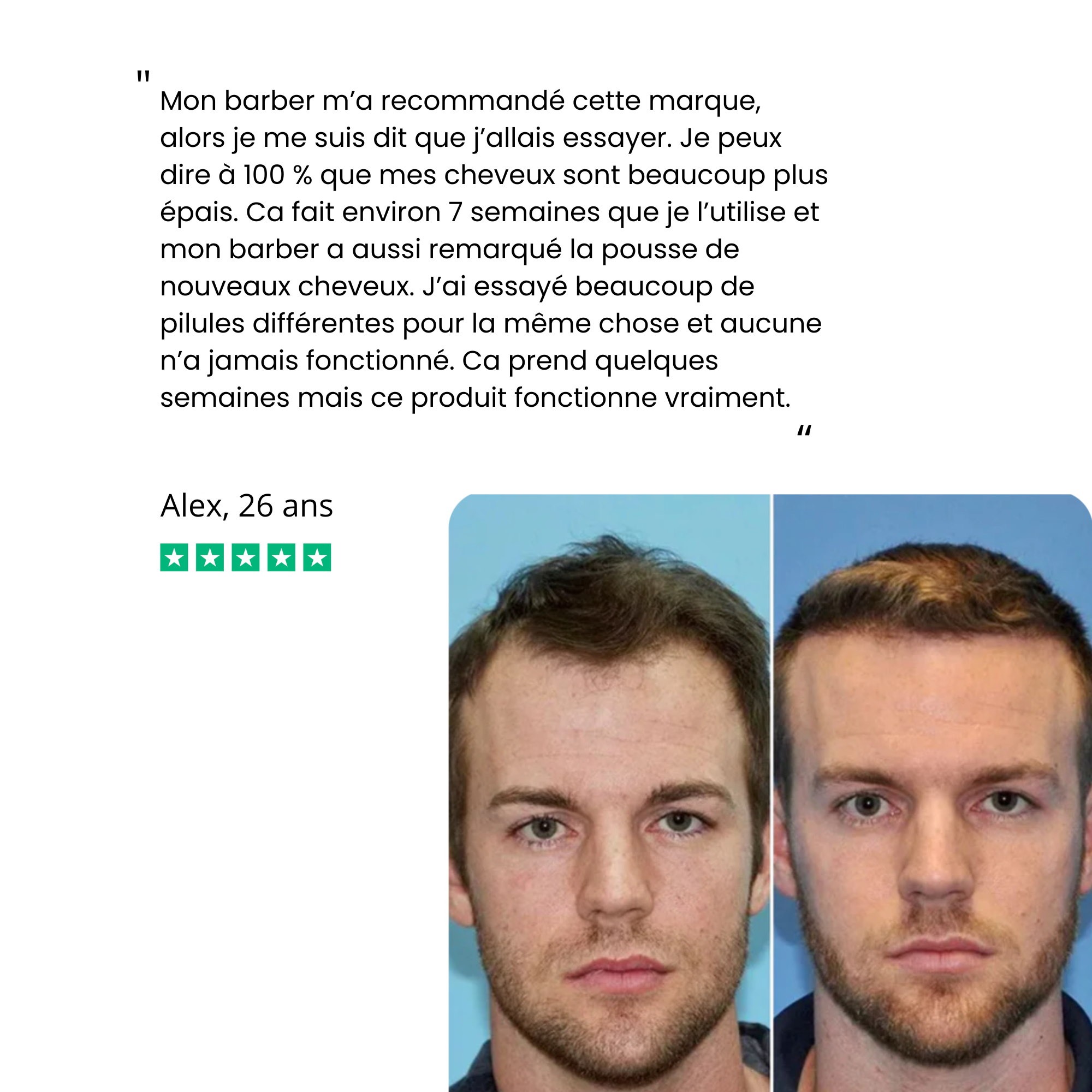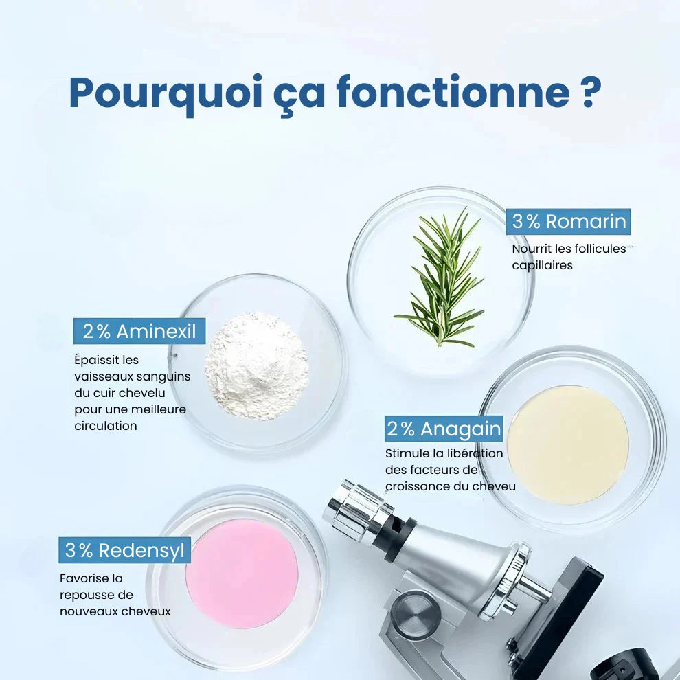 Notre formule réveille les follicules inactifs pour une croissance plus rapide et plus dense.